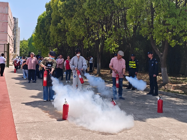保卫处治安科科长邓友君通过高校火灾案例警示商户重视电路、燃气安全。消防员现场教学灭火器、消防栓操作,并组织疏散演练。要求商户定期自查消防设施,确保消防通道畅通。