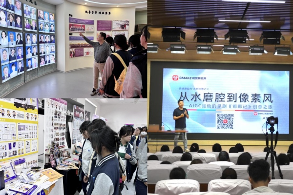 中职院校的师生分批有序地参观了东海学院校史馆,并到德艺馆观看了东海学院优秀学生作品及成果展。随后,GMAKE视觉研究所的卢文军老师应艺术设计学院邀请给来访同学们作“从水磨腔到像素风——AIGC驱动的昆剧《邯郸记》创意之旅”主题讲座。整个参观活动充分向中职院校师生展示了东海学院的办学实力、专业优势和发展前景,使同学们得以更深入地感知高职教育的学习氛围,激发他们对专业课程的兴趣,让他们对未来进入我校深造和学习充满了期待与信心。活动取得了良好的互通交流效果,为日后两校的进一步合作奠定了基础。通过讲座也使同学们深入学习和了解AIGC(人工智能生成内容)如何赋能艺术创作,尤其是在传统文化的现代化转化中发挥的作用,为设计作品增添新的维度和可能性。
