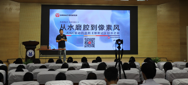 418日下午,GMAKE视觉研究所卢文军老师应邀为来自上海市现代流通学校和上海经济管理学校的约120名师生带来了“从水磨腔到像素风——AIGC驱动的昆剧《邯郸记》创意之旅”主题讲座。