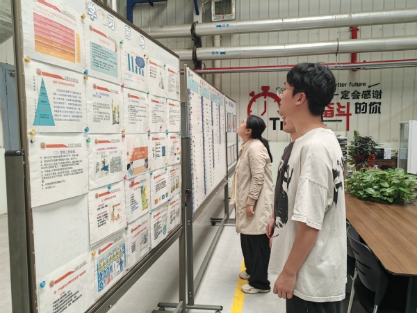 随后,同学们来到部分一线生产车间。大家亲眼见证了工人们如何通过自动化设备和精密技术,从复杂的手工劳动中解放出来,转而投入到更为智能化、技术化的工作中。同学们感受到了劳动解放的意义和价值以及“一丝不苟、精益求精”的工匠精神。
