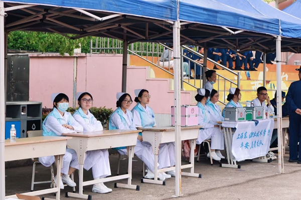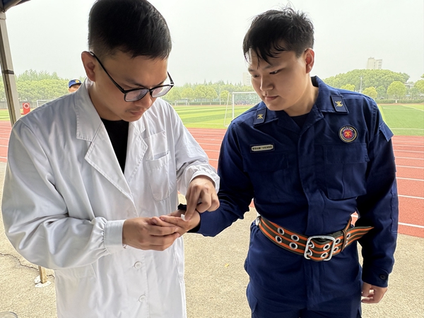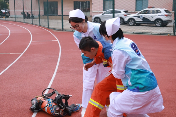 校志愿者与保健站携手 为消防春季运动会筑牢后盾