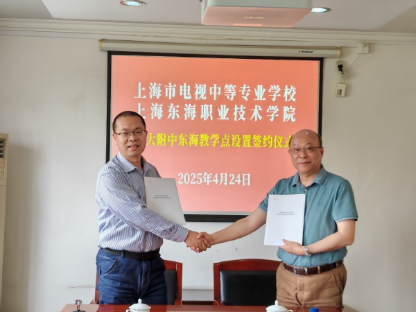 2025年4月24日上午,在上海市杨浦区国顺路288弄上海开放大学宾馆2楼会议室,上海东海职业技术学院与上海市电视中等专业学校举行了开大附中东海教学点签约仪式。