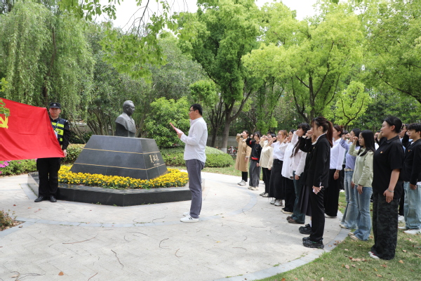 会后,参加培训的学生预备党员集中前往文化长廊夏征农老校长铜像前,佩戴党徽向党旗进行庄重的入党宣誓。(通讯员 李梓卓)