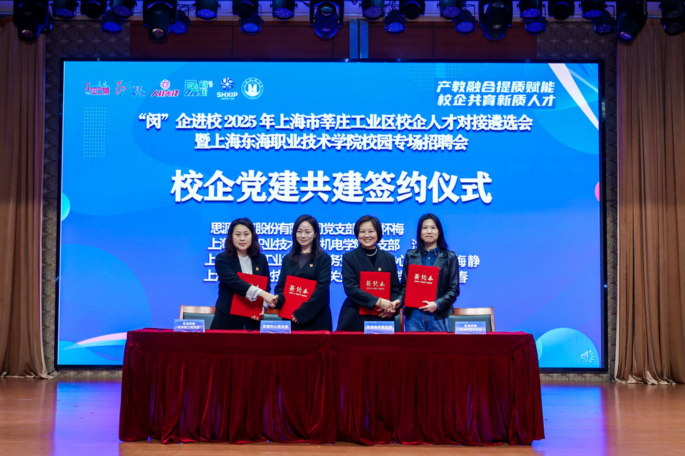 党建共建是深化校企合作的重要纽带,在校企党建共建签约环节,思源电气股份有限公司党支部与机电学院党支部、莘庄工业区社区事务受理服务中心党支部与机关党总支第二党支部达成合作。这一创新模式以党建引领促进就业落实,构建“党建+就业”联动模式,推进学校党建与就业工作深度融合,进一步强化了政校企协同育人机制,为赋能产教融合注入红色动能。
