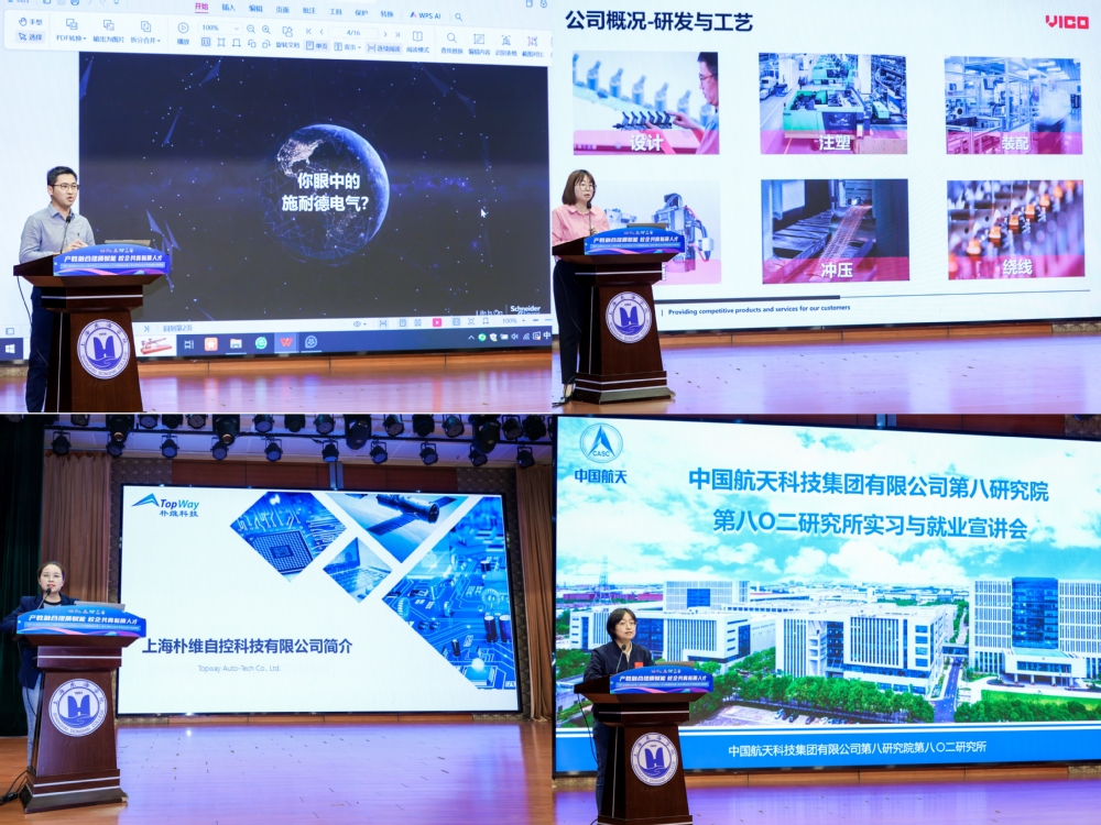 随后,学校同步开展重点企业带岗宣讲,从23家企业中挑选出产业布局与学校专业设置匹配度高、行业内有一定知名度和规模的优质企业进行现场推介。上海施耐德低压终端电器有限公司、上海维科精密模塑股份有限公司、上海朴维自控科技有限公司和中国航天科技集团有限公司第八研究院第八〇二研究所4家企业应邀参加宣讲,我校480余名学生来到现场,与企业嘉宾交流,积极自我推荐,实现了良好的双向互动。23家企业嘉宾全方位立体式呈现了工作环境、企业文化、职业发展等,介绍企业需求、人才培养机制、发布就业岗位、简历投递方式等信息。企业代表表示,此类活动不仅缓解了制造业“高技能人才缺口”压力,也为学生提供了“零距离”对接产业需求的平台。