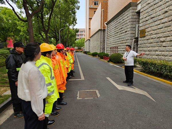 副校长郁萍到现场督导检查,并强调防汛防台工作的重要性,指出要立足 “防”、突出 “快”,以练促改、以练筑防。