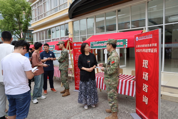 5月8日中午,武装部开展了2025年秋季征兵政策现场咨询活动,特邀闵行区征兵办高晓东参谋一行人员亲临现场为我校学生就相关报名条件和征兵政策进行现场答疑。此次活动大力宣传了入伍的相关政策,鼓励大学生积极参与报名应征,激发广大学生参军报国的热情。