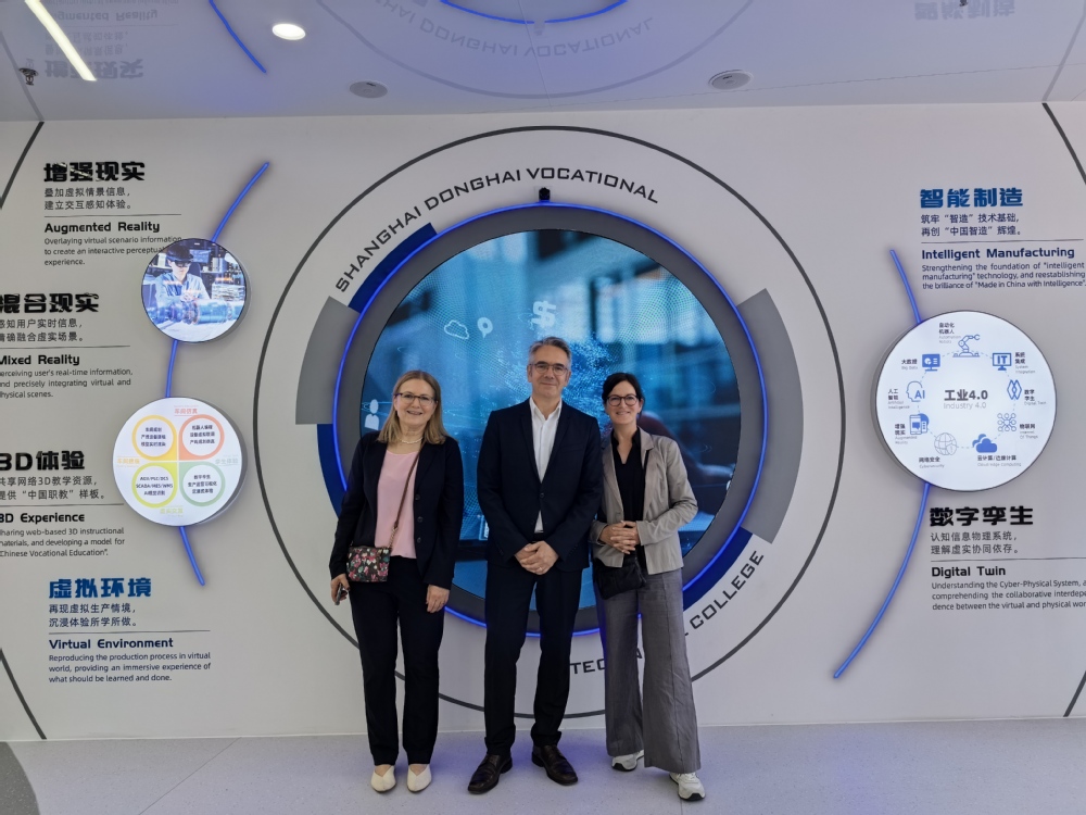 会后,德国代表团先后参观了国家级虚拟仿真实训基地、集成电路开放型产教融合实践中心、工程实训中心等。