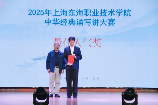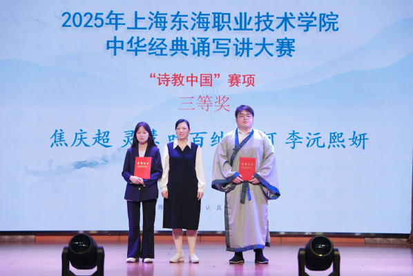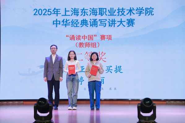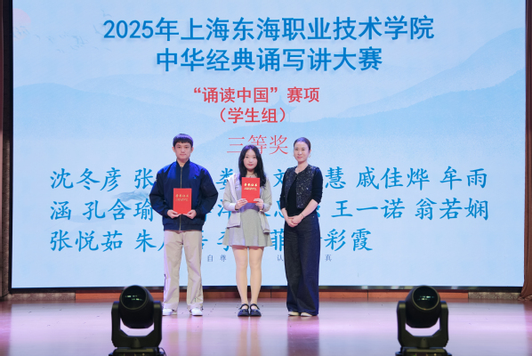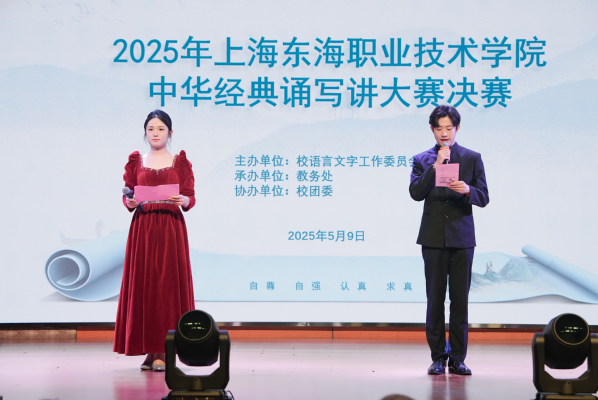 2025年上海东海职业技术学院中华经典诵写讲大赛暨第七届中华经典诵写讲大赛上海赛区系列比赛校内选拔赛于5月9日举行,大赛的主题为“典耀中华,赓续文脉”。大赛自3月24日启动,师生报名踊跃,共计收到“诵读中国”赛项参赛作品35件,“诗教中国”赛项参赛作品14件。经大赛评委会网评,最终评定“诗教中国”赛项获奖作品7件,其中二等奖2件,三等奖5件(含教师组2件);评定“诵读中国”赛项学生组二等奖4件,三等奖作品10件,教师组一等奖1件,二等奖2件,三等奖作品4件。