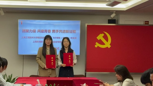 5月15日,上海东海职业技术学院航空学院与上海工程技术大学航空运输学院在上海中共四大纪念馆联合开展了党团建共建活动,围绕“互帮、互学、互助”的共建目标,双方就建立有效机制、共享有利资源、增进交流等方面达成共识,并正式签署了共建协议书。双方表示,将以此次共建为契机,充分发挥各自优势,共同探索党团组织建设的新路径,努力开创党团组织建设工作新局面。