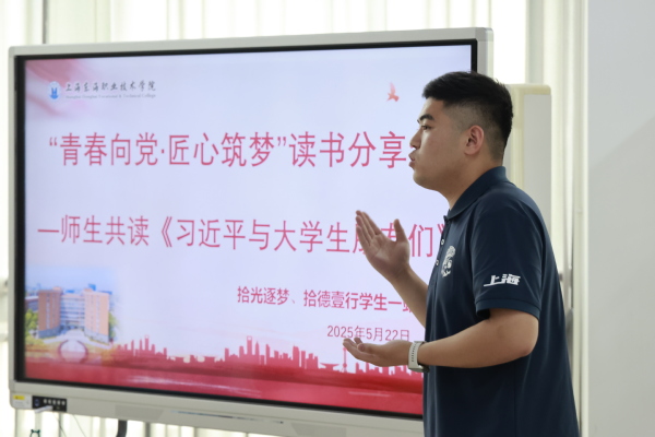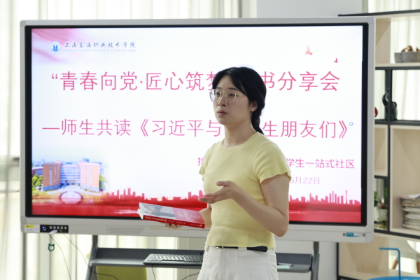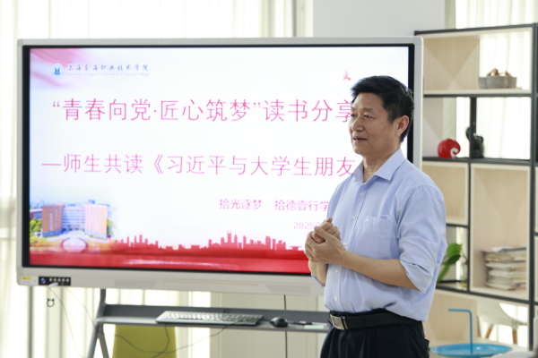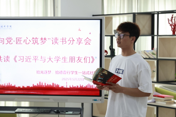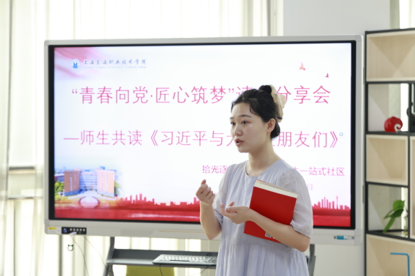 马克思主义学院教师梁艺馨以“情感”“实践”“吃苦”三个关键词,带领师生回顾了书中习近平总书记与青年学子交流的故事片段。她结合高职教育特点,通过书中“习近平同志提倡年轻人要‘接地气’‘扎根基层实践’”等案例,重点解读了“技术报国匠心逐梦”等章节,阐释职业院校学生成长成才的实践路径。