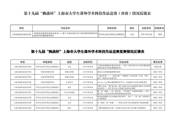 近日,第十九届“挑战杯”上海市大学生课外学术科技作品竞赛落下帷幕,全市58所高校,共655个项目同台竞技,其中240个项目入围市级决赛。我校以1个一等奖、8个三等奖的突破性成绩,在奖项数量与质量上双双刷新校史纪录。本届挑战杯,东海学院创下了全校各学院最高参与率,广大师生积极参与,认真备赛,精挑优选,全情投入,为挑战杯活动树立了新的标杆。