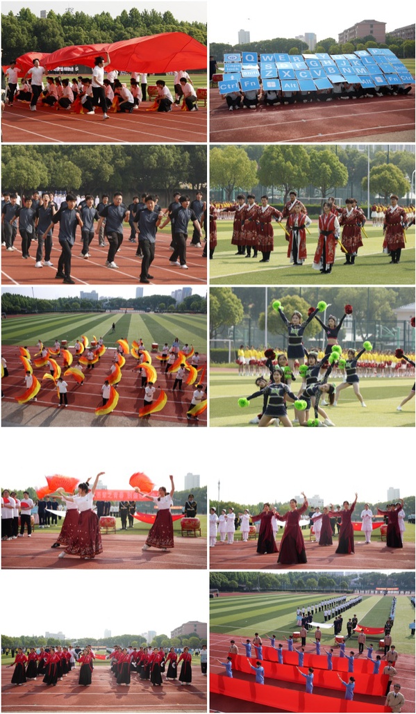 本届运动会上,短跑、长跑、接力跑、跳远、跳高、铅球、实心球等各项田径赛事激战正酣。运动员们秉持“更快、更高、更强、更团结”的奥运精神,在赛场上奋力拼搏,挥洒汗水,不断挑战自我极限,追求新的突破。同时,“一圈到底”“旱地龙舟”“动力火车”“四人五脚跑”等新增及经典趣味项目,以及跳长绳等群众体育项目吸引了广泛参与,现场气氛热烈欢腾。赛场内外,志愿者们穿梭于各个服务点,恪尽职守,热情周到地为赛事保驾护航。看台上,拉拉队员们呐喊助威,此起彼伏的掌声与喝彩声响彻运动场,将赛场氛围一次次推向高潮。