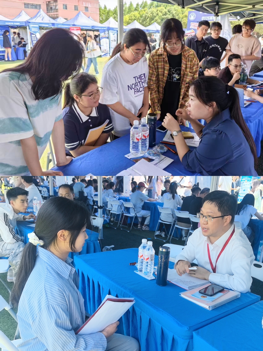 在校园招聘会现场,设置了发展咨询、心理咨询、法律咨询三大专区。现场气氛热烈,准毕业生就劳动合同签订、职场心理调适、劳动权益保障等问题进行咨询,马院职业生涯教育课程组一一解答,为学生提供了个性化的指导。