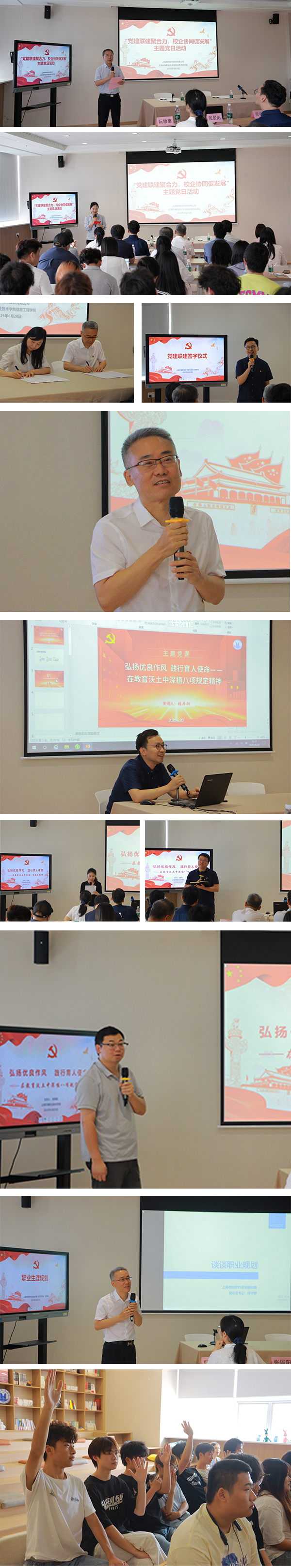 在“同上一堂党课环节,校长助理张居阳以《弘扬优良作风 践行育人使命——在教育沃土中深植中央八项规定精神》为题,从理论根基、实践路径、师生共行三个维度,解读如何将中央八项规定精神融入教育教学全过程,号召全体师生“内化于心、外化于行”,共建风清气正的教育生态。围绕党课内容,大家进行了交流分享信息工程学院党员教师代表张悦结合育人实践,提出“以初心为镜、以创新为犁”的育人理念;微创软件运营总经理悦雷分享企业党员在岗位中的先锋作用,展现党建与业务融合的生动案例党委组织部副部长朱新华在交流中指出主题党日活动是对师生党员进行的现场党性教育,希望双方以党建联建为纽带,深化合作,共育人才。