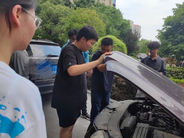 机电学院师生将专业技能与社区服务精准对接,运用汽车雾化处理技术为社区车辆提供专业养护服务,同步开展汽车保养知识普及,采用“操作演示 + 原理讲解”模式提升居民认知,免费为社区居民提供服务,赢得了居民们的一致好评。