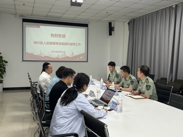 6月26日,闵行区人民武装部副部长张道广一行来校开展2025年度兵役执法检查工作,学校党委副书记王玉、武装部部长岳宝华及武装部工作人员、相关学院辅导员出席会议。