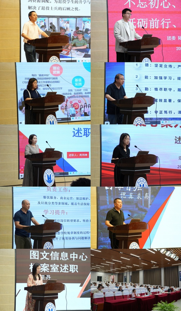 会上,各教学单位、党政管理部门及直属部门的中层干部围绕两年任期内的履职情况、存在问题和未来工作规划等方面进行了全面述职。与会人员认真听取了述职报告,并开展了现场测评。