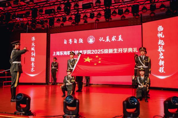 9月28日上午,东海学院2025级新生开学典礼暨军训总结表彰大会在激昂的国歌声中举行。