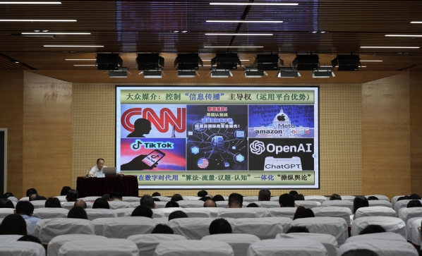 杨苏教授聚焦“党组织落实‘意识形态工作责任制’的着力点”的主题,系统梳理了美国“思想殖民”的历史源流与现实表现,重点剖析了其完整的实践体系与运作机制,并深刻揭示了美国“思想殖民”所带来的多重危害。他强调,美国的“思想殖民”行径已对中国的“安全发展”构成严峻而长期的挑战,我们必须做好在较长时间内应对外部环境变化的思想准备、工作准备与斗争准备,增强忧患意识、坚守底线思维,打好防范化解重大风险攻坚战,在坚决反对霸权主义的实践中,不断锤炼斗争意志、积累斗争经验、提升斗争本领。