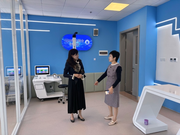 会后,毛燕君一行在张美琴的陪同下,参观了东海学院护理学院康复护理实训室。实训室配备先进的康复设备与智慧化教学设施等给毛燕君留下了深刻的印象。毛燕君对实训室的建设水平给予高度评价,双方就实训项目开发、实习带教等细节进行了现场探讨。