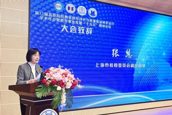 张慧指出,本届年会聚焦办学能力评价、智慧督导等议题,是深化职业教育内涵建设、对接国家战略与区域发展需求的重要平台。她详细介绍了上海市在强化顶层设计、深化分类评价改革、谋划高职办学能力评价等方面的重点举措,并期待本次大会能够凝聚智慧,为高职教学督导评价创新、AI技术在教育治理中的应用以及职业教育质量保障体系的完善,提供切实的理论支撑与实践方案,从而积极助推上海及全国职业教育高质量发展。
