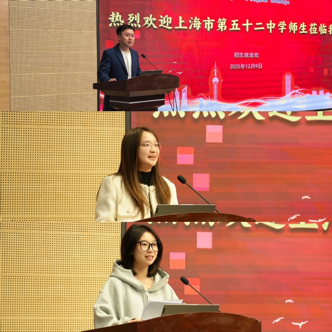 12月9日,上海市第五十二中学2026届毕业班师生来我校参观交流并举办18岁成人仪式。招生就业处、各学院相关人员参加交流会。招就处行政宣传科科长孟倩主持会议。