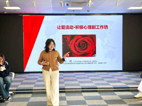 本次活动的核心环节是专业心理剧表演。王琪简要讲解了角色扮演、场景设定与情感表达的基本方法,并引导自愿参与的同学进入剧场中心,通过角色互换、场景重现与对话重构,生动呈现那些“难以言说”的情感冲突与未完成的心结。在这一充满张力与共情的戏剧过程中,参与者与观察者共同见证了情感的流动、理解的深化与视角的转变。有同学在分享中表示:“通过具身化的体验,长期压抑的情绪得到了释放,对家庭关系有了更深的理解,内心轻松了许多。”
