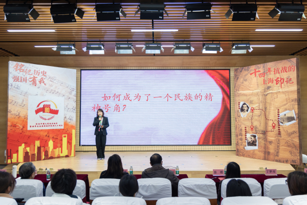 课程在庄严的升国旗视频中拉开序幕。马克思主义学院教师王晓默作为课程主持人,首先从中华人民共和国国歌《义勇军进行曲》的诞生于上海讲起,启发学生思考这首歌曲如何从一个城市的音符,升华为整个民族在危亡时刻的精神号角,并由此开启对上海十四年抗战烽火岁月的追溯。