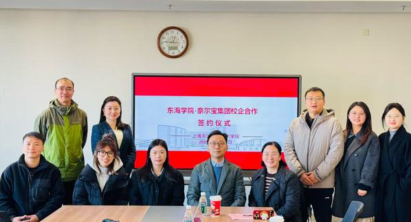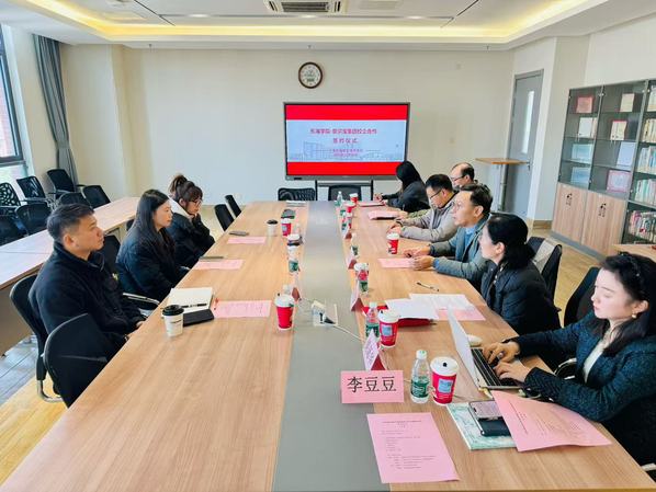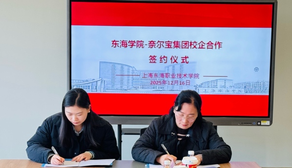 为主动应对学前教育行业发展新形势,破解幼儿园数量调整背景下的学生就业难题,深化教育链、人才链与产业链、创新链有机衔接,12月16日上午,上海东海职业技术学院与上海奈尔宝企业管理有限公司产教融合暨订单班签约仪式在匠兴苑A401会议室举行。上海奈尔宝企业管理有限公司校企合作部经理柴化荣、招聘部经理谢晓岑,上海瀚宏教育科技有限公司商务江懿川,学校校长助理、教务处处长张居阳,教育学院院长许铁梅、党总支书记马祥龙等领导嘉宾及院系相关专业负责人出席仪式,共同见证这一校企携手的重要时刻。
