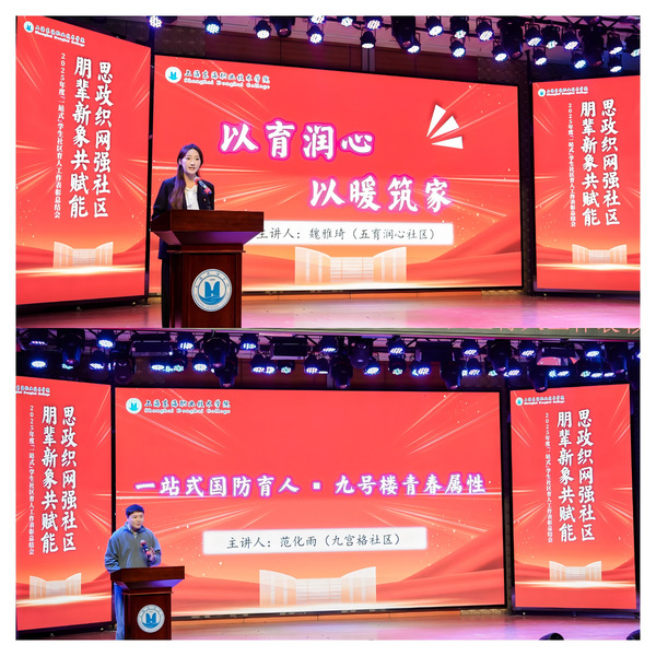 社区故事分享环节温情满溢。五育润心社区魏雅琦同学以《以育润心,以暖筑家》为题,讲述创意桌游、书香活动中红色教育与心灵成长的深度融合;九宫格社区范化雨老师则以《一站式国防教育:九号楼的青春属性》为题,聚焦多学院混住模式,分享以国防教育凝聚育人合力的探索实践。师生视角的碰撞,让“一站式”社区的育人温度与实效愈发真切可感。温暖的故事滋养人心,而对先进典型的表彰,则为这份育人实践树立了清晰的前行标杆。