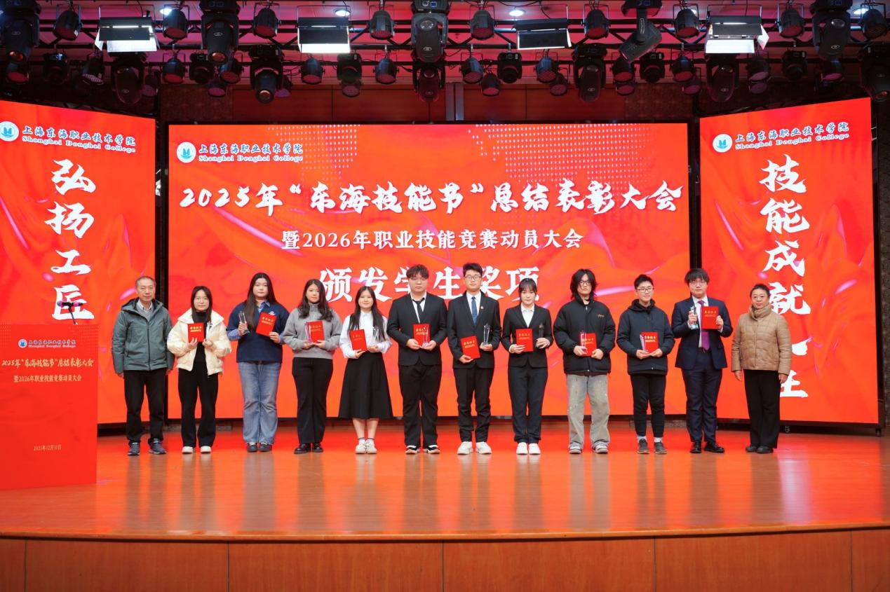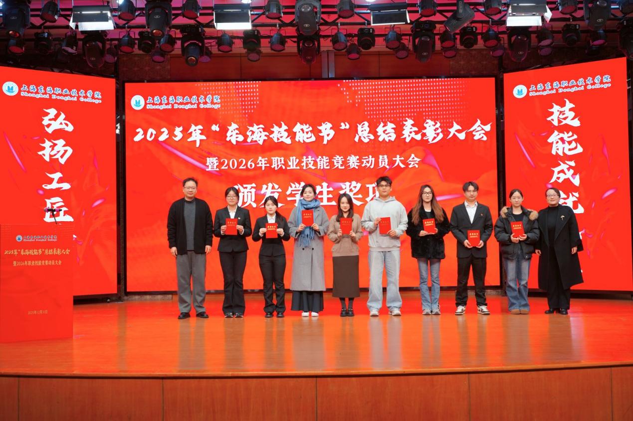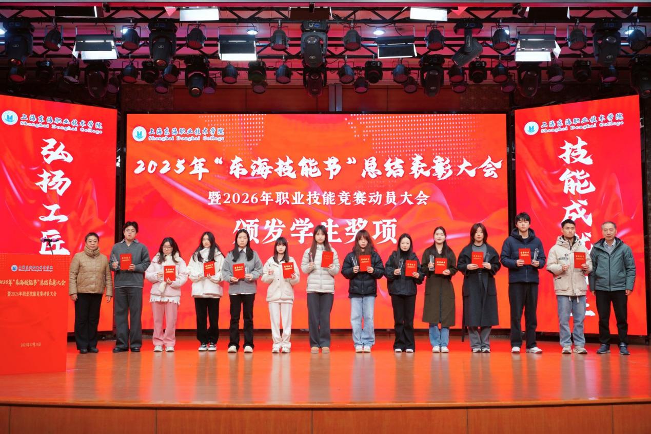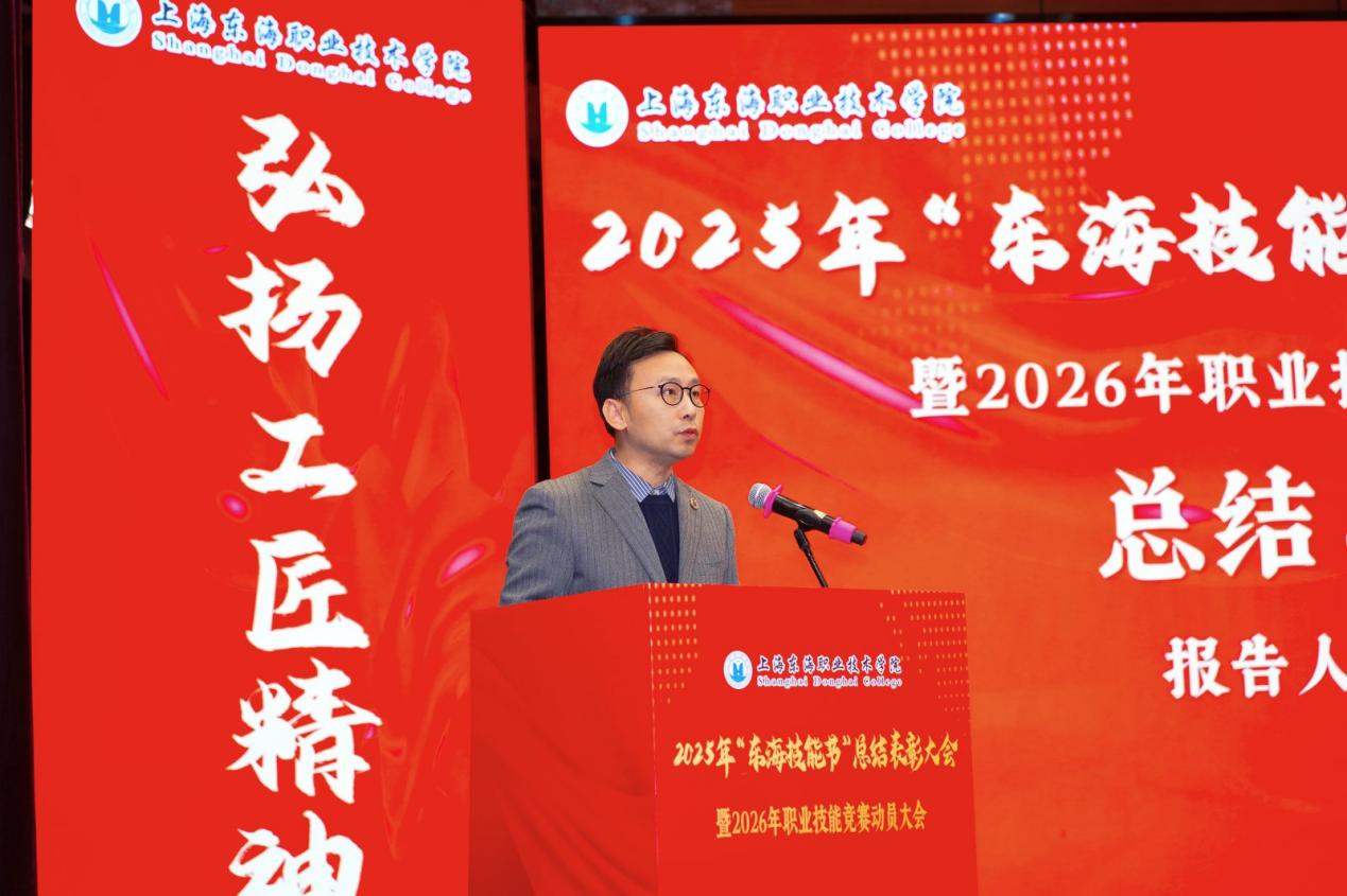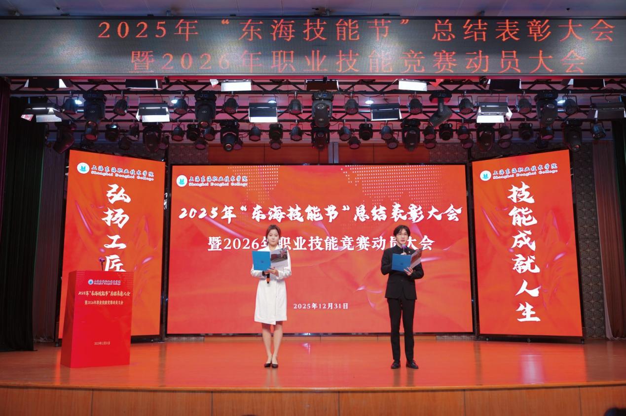 1231日,上海东海职业技术学院2025年“东海技能节”总结表彰大会暨2026年技能竞赛动员大会在东海源报告厅召开。校领导、全体中层干部、专业主任、竞赛指导教师、获奖师生及二级学院师生代表等400余人出席会议。大会以“弘扬工匠精神,技能成就人生”为主题,全面总结2025年度学生技能竞赛成果与育人成效,并对表现突出的集体与个人予以表彰。