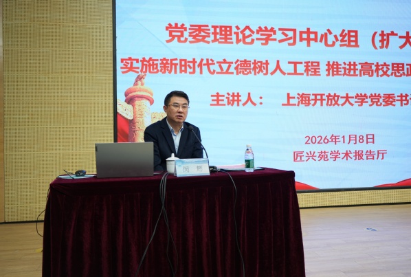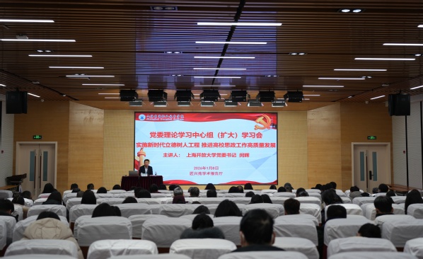 1月8日上午,学校召开党委理论学习中心组(扩大)学习会,上海开放大学党委书记闵辉应邀来校作专题报告,我校党委书记曹蓉蓉主持报告会。