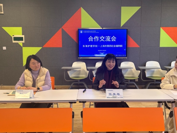 为深化基层党建工作,推动护理专业产教融合高质量发展,1月9日,上海大华福利院院长杨蔚、党组织负责人刘捷,上海第四社会福利院院长沈翠翠、副院长诸群瑛、护理部负责人张昕怡莅临护理学院开展合作交流。东海护理学院院长张美琴、党支部书记彭艳、康养专业主任黄玲玲热情接待并出席活动。