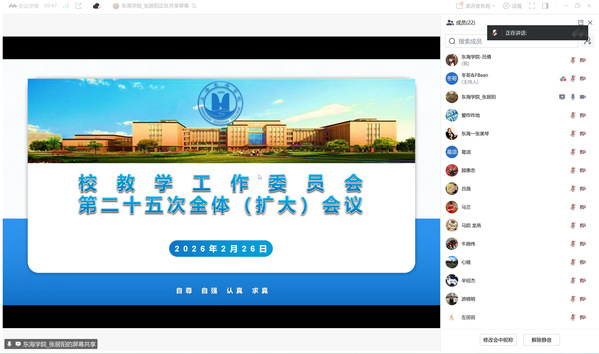 2月26日下午,校教学工作委员会第二十五次全体(扩大)会议在线上召开。校教学工作委员会成员、二级学院教学院长、产教融合办公室、评估办公室负责人及教务处人员共25人参加会议。会议由校长助理张居阳主持。