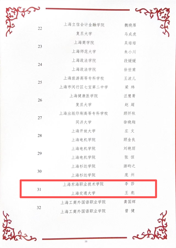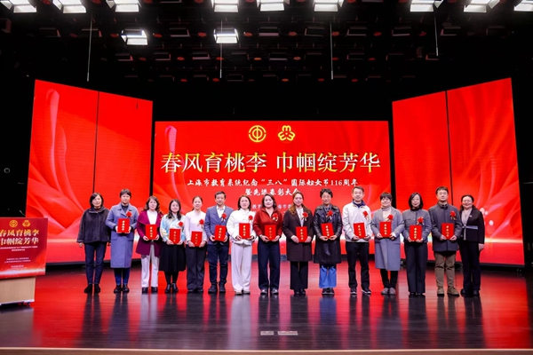 3月3日下午,由上海市教卫工作党委、上海市妇女联合会指导,上海市教育工会、上海市教育系统妇工委主办的“春风育桃李 巾帼绽芳华”——上海市教育系统纪念“三八国际妇女节”第116周年表彰大会在上海教育会堂举行。经我校推荐申报,上海市教育系统妇工委、教育工会女工委评审公示,我校艺术设计学院教师李莎、王彪夫妇荣获上海市教育系统第十五届比翼双飞模范佳侣,航空学院副院长张敏、陈昊鹏夫妇荣获上海市教育系统第四届最美家庭提名奖。