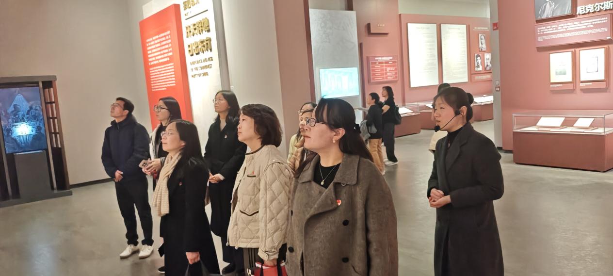 在中共一大参观学习过程中,全体党员驻足凝视珍贵历史文物、认真聆听革命先辈事迹,沉浸式回望中国共产党诞生的光辉历程,深刻感悟建党之初的赤诚初心与使命担当。从斑驳的文献史料到复原的历史场景,从波澜壮阔的建党征程到矢志不渝的革命信仰,党员们深刻体会到,树立和践行正确政绩观,根源在于坚守为民初心、牢记建党使命,始终把对党忠诚、为民造福作为干事创业的根本准则。大家边走边看、边学边思,在历史回望中叩问初心、在精神传承中校准方向,进一步明晰了思政工作者为党育人、为国育才的核心职责,坚定了以正确政绩观引领思政教学、科研与实践工作的行动自觉。