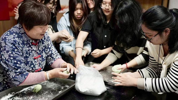 活动结束后,几位同学分享了他们的感受:“胖阿姨教我们的时候特别认真,她的手特别稳。她说‘每一次都要像第一次一样认真’,这句话我记住了。”“以前只知道吃青团,今天才知道一只青团背后有这么多故事。麻花郎是什么、怎么做、为什么要坚持,胖阿姨讲得特别清楚,也特别真诚。”“我是传媒学院的学生,今天既学会了做青团,也拍了很多素材。胖阿姨揉面的那个特写,我拍了好几张,特别有力量感。”“以前觉得劳模离我很远,非遗也离我很远。今天发现,劳模就在我们身边,还让我们叫她‘胖阿姨’。她手上那股认真劲儿,我会一直记得。”
